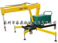 液壓吊車屬于起重機械的一種,是一種作循環、間歇運動的機械。一個工作循環包括:取物裝置從取物地把物品提起,然后水平移動或旋轉到到指定地點降下物品,接著進行反向運動,使取物裝置返回原位,以便進行下一次循環。